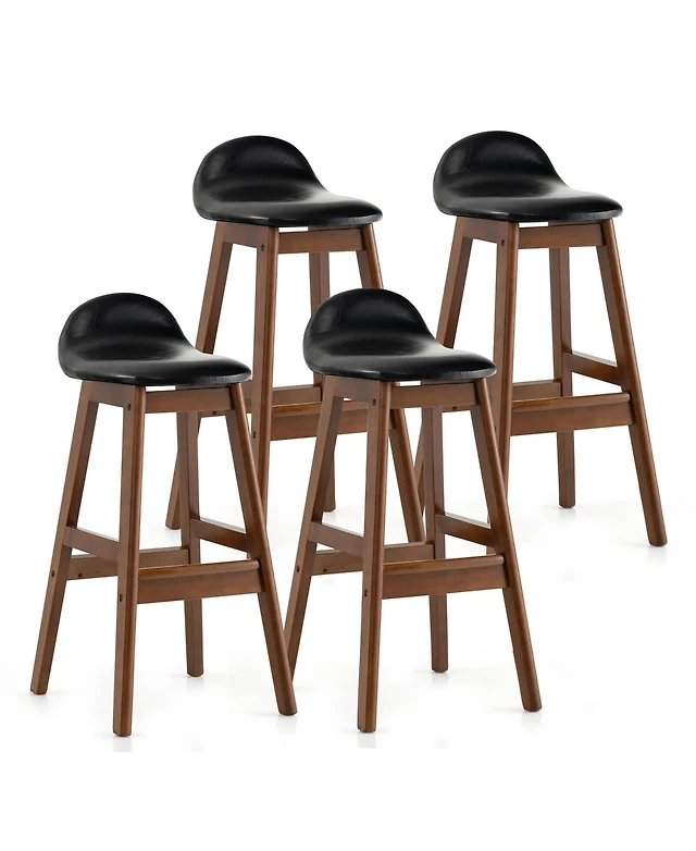 Gymax Set of 4 Upholstered Pu Leather Barstools 27.5'' Wooden Dining Chairs Black & Brown