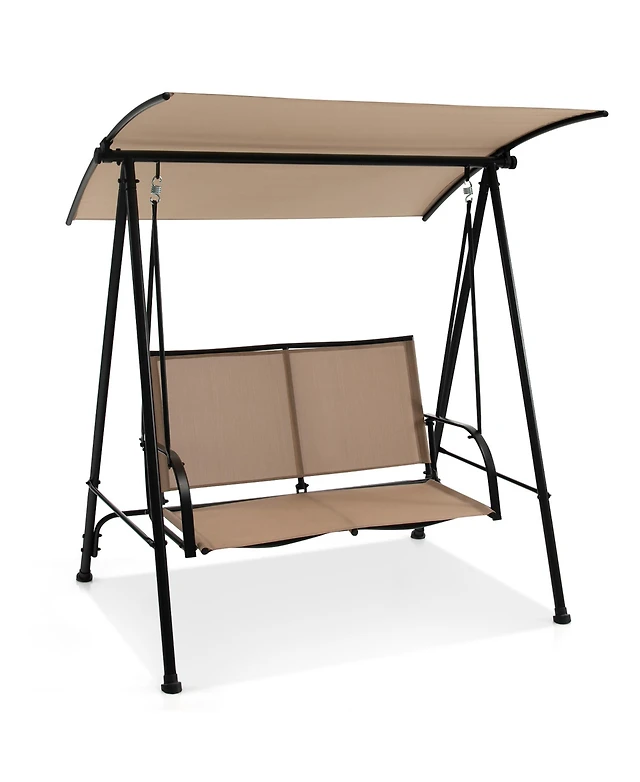 3 Seat Outdoor Patio Canopy Swing with Cushioned Steel Frame