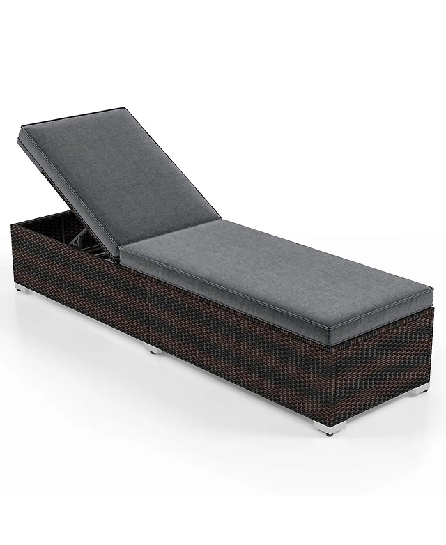 Gymax Outdoor Chaise Lounge w/ Long Seat Cushion Heavy-Duty Metal Frame