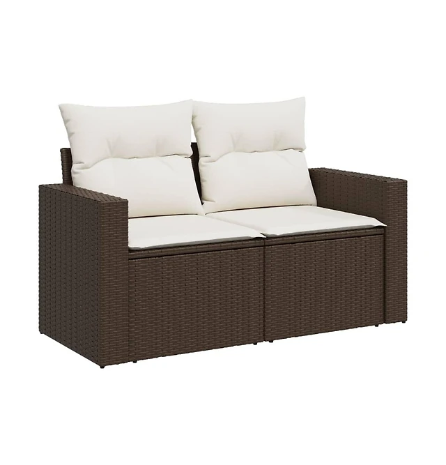 vidaXL Patio Sofa with Cushions 2-Seater Beige Poly Rattan&Acacia Wood