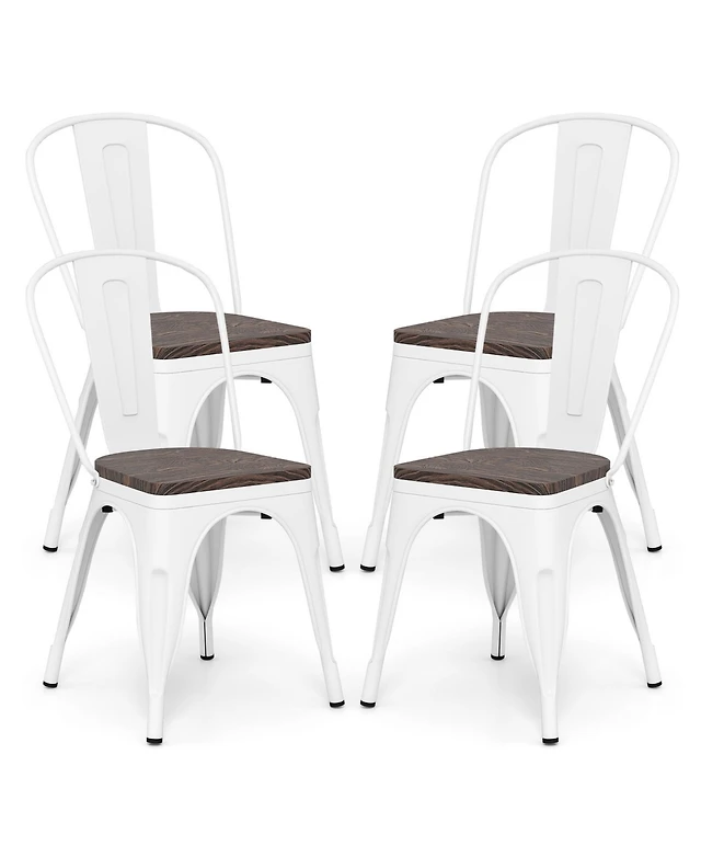 Set of 4 Wooden Farmhouse Kitchen Chairs with Rubber Wood Seat