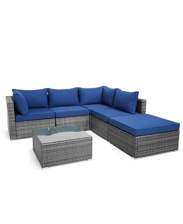 6 Pieces Outdoor Rattan Sofa Set with Seat and Back Cushions