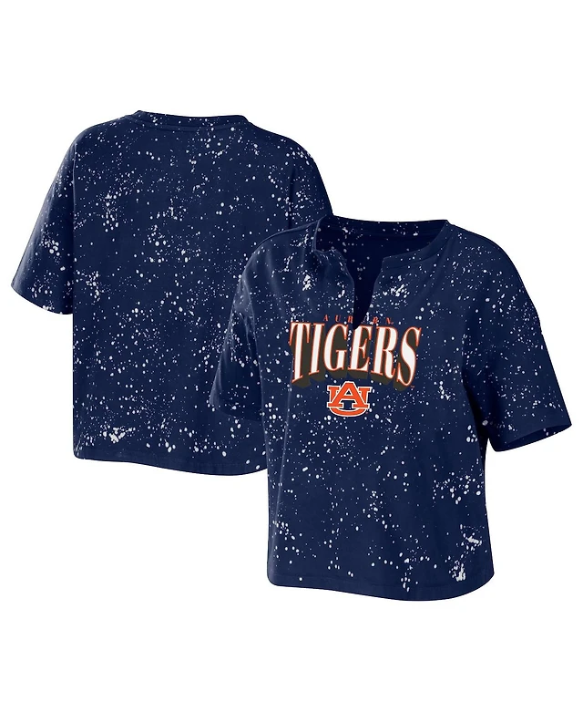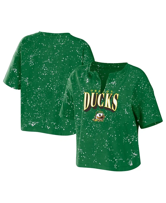Women's Wear by Erin Andrews Crimson Oklahoma Sooners Bleach Wash Splatter Cropped Notch Neck T-shirt