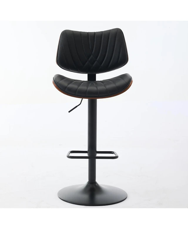 Simplie Fun Walnut Bentwood Faux Leather Back Swivel Bar Stool