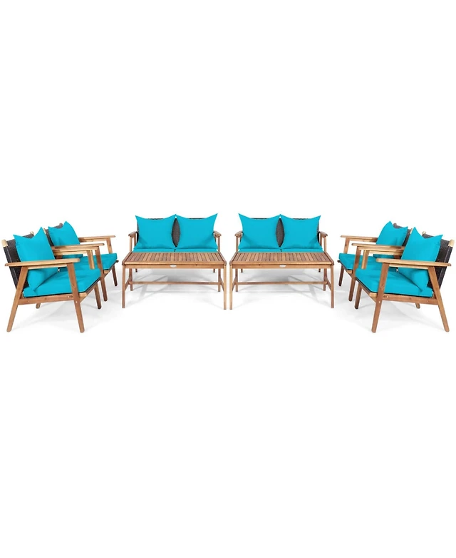 4PCS Patio Solid Wood Furniture Set Conversation Coffee Table W