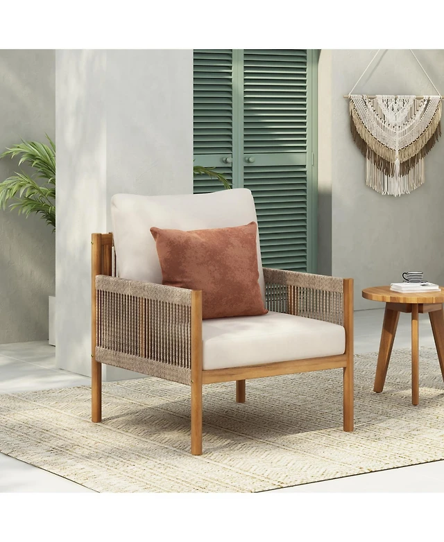 Streamdale Woven Outdoor Lounge Chair - Wood Frame, Polyester Cushions