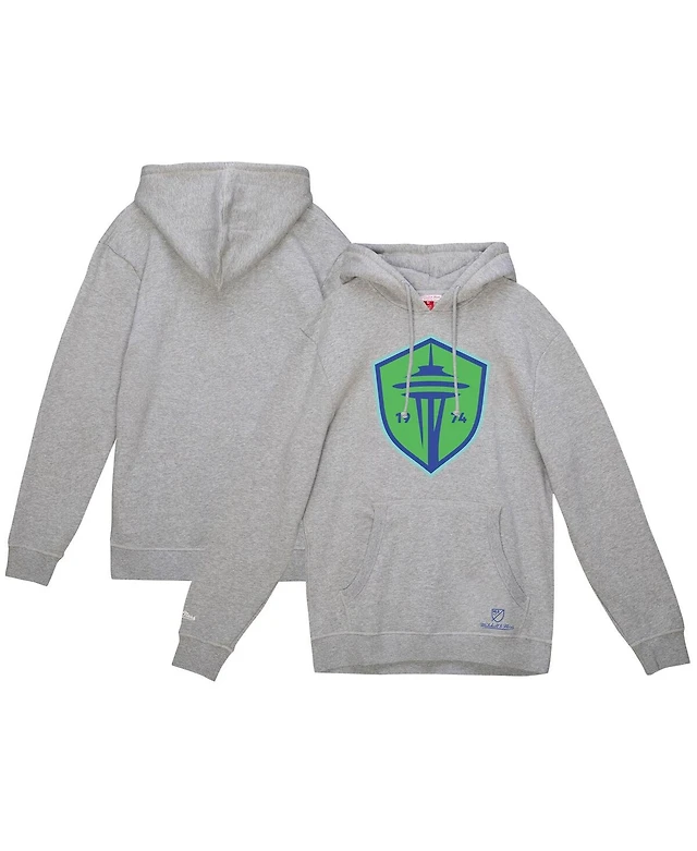 Men's Mitchell & Ness Heather Gray Seattle Sounders Fc Primary Logo Pullover Hoodie