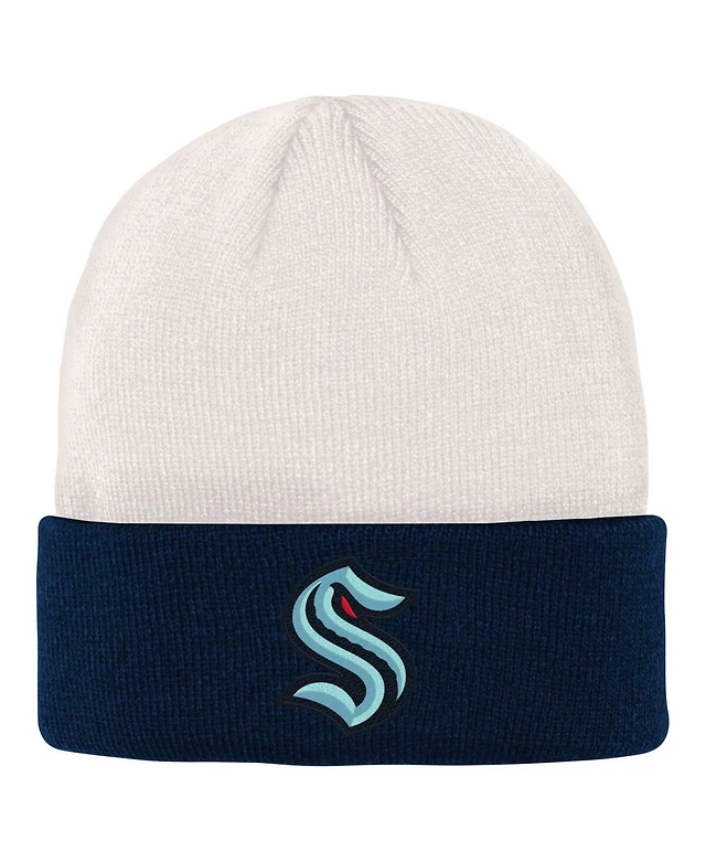 Big Boys and Girls Cream, Deep Sea Blue Seattle Kraken Logo Cuffed Knit Hat