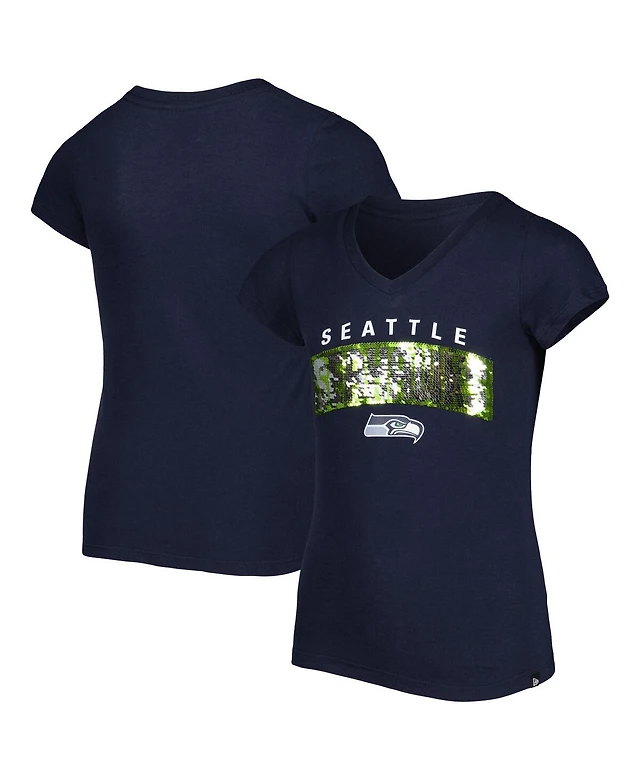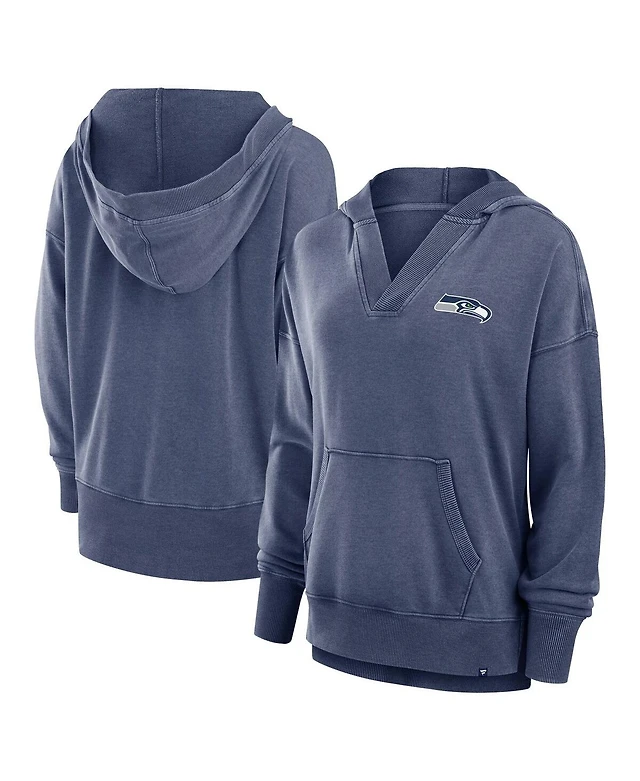 Fanatics Women's Heather Navy Seattle Seahawks Initiative Snow Wash French Terry V-Neck Pullover Hoodie