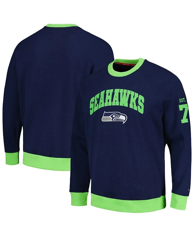 Men's Tommy Hilfiger College Navy, Neon Green Seattle Seahawks Reese Raglan Tri-Blend Pullover Sweatshirt
