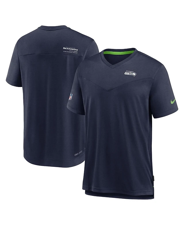 Men's Nike Heather Navy Seattle Seahawks 2022 Sideline Coach Chevron Lock Up Performance V-Neck T-shirt