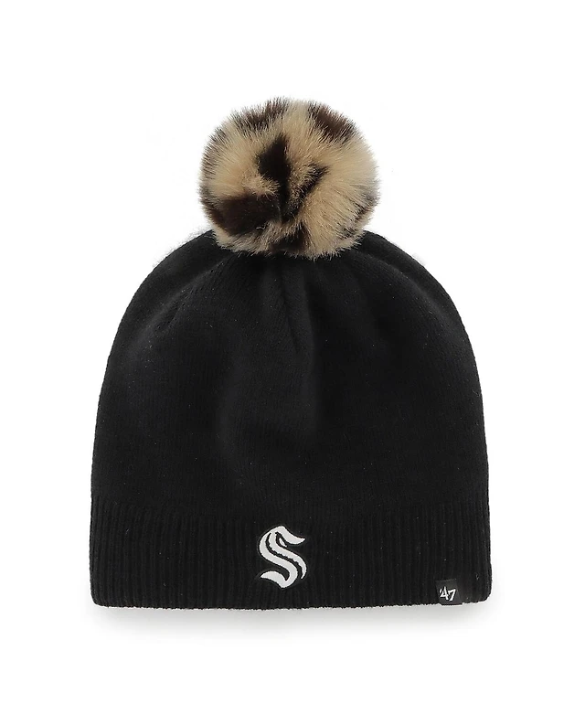 Women's '47 Black Seattle Kraken Serengeti Knit Beanie With Pom