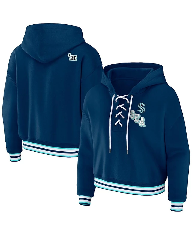 Women's adidas Deep Sea Blue Seattle Kraken Skate Lace Team Pullover Hoodie
