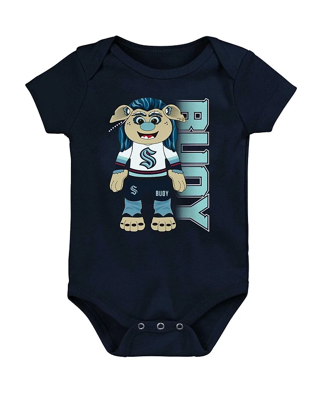 Newborn and Infant Boys Girls Teal, Navy, White Seattle Mariners Minor League Player Three-Pack Bodysuit Set