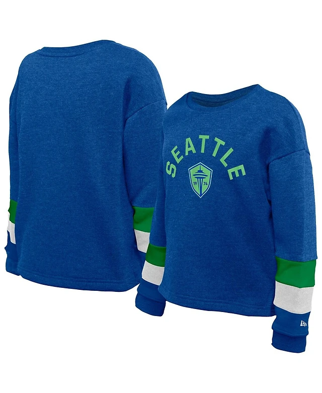 5th & Ocean By New Era Big Boys and Girls Blue Seattle Sounders Fc High-Low Crewneck Sweatshirt