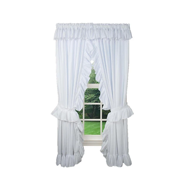 Ellis Curtain 2-Piece Ruffled Priscilla Window Curtain Panel Pair with ties - 80x84" White