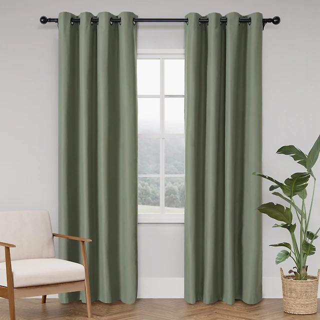 100% Blackout Linen Texture Curtains with Grommet Top, 2 Panels