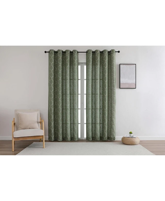 Satti Embroidered Leaf 100 Blackout Grommet Curtains