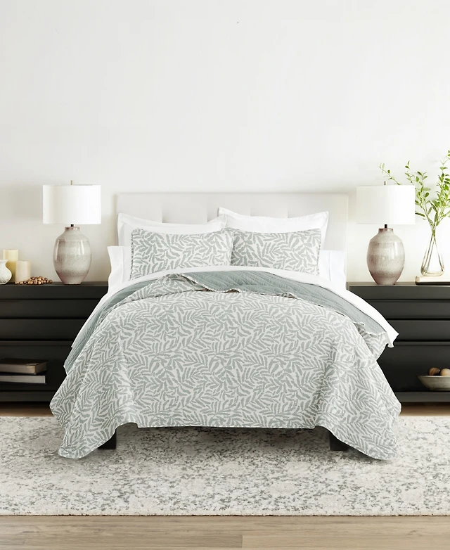 Ienjoy Home Watercolor Leaves Stripe Reversible Lightweight Quilt Sets