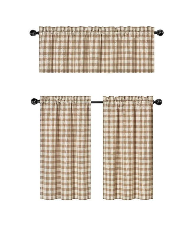 Kate Aurora Modern Country Farmhouse 3 Piece Plaid Checkered Cafe Kitchen Curtain Tier & Valance Set