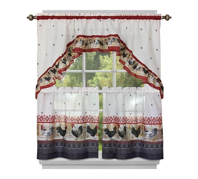 Kate Aurora Old Country Rooster Cottage Kitchen Curtain Tier & Swag Set