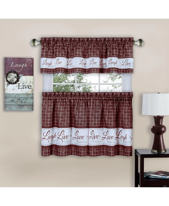 Kate Aurora Country Farmhouse Plaid Checkered Gingham 3 Pc Kitchen Curtain Tier & Valance Set