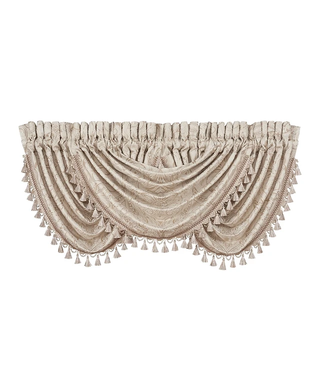 Rlf Home 4" Top Tab High Quality Fabric Duncaster 2-Scoop Victory Swag for Windows 40" x 25" Porcelain