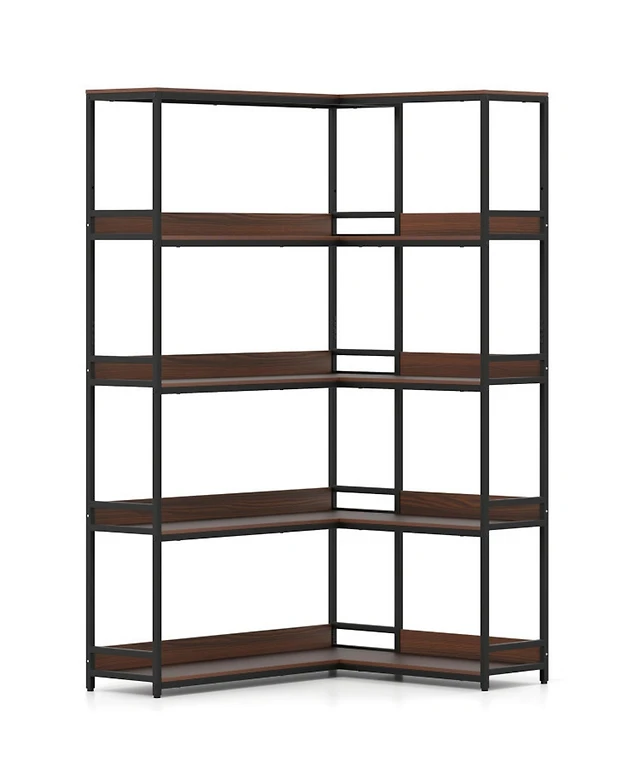 Streamdale 6 Tier L-Shaped Corner Bookshelf with Anti-Drop & Anti-Tipping Device - Dark Brown