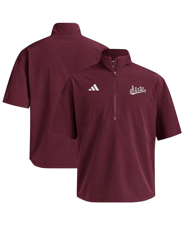 Adidas Men's Maroon Mississippi State Bulldogs Woven Quarter-Zip Short Sleeve Pullover Sweatshirt