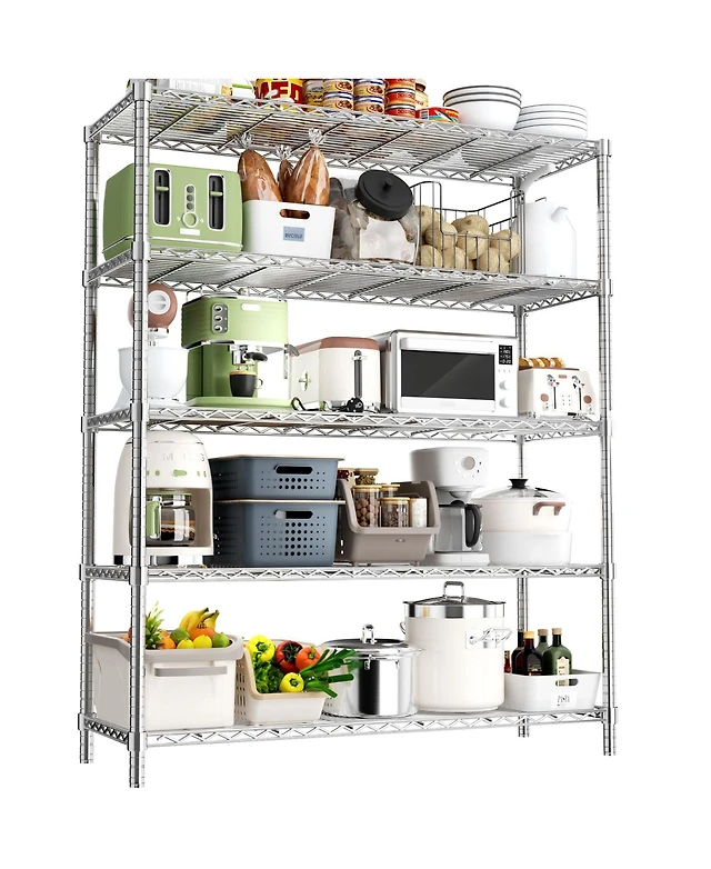 Yigii Adjustable 5-Tier Metal Connector Shelving - Heavy Duty, Boltless, for Kitchen, Pantry, Garage