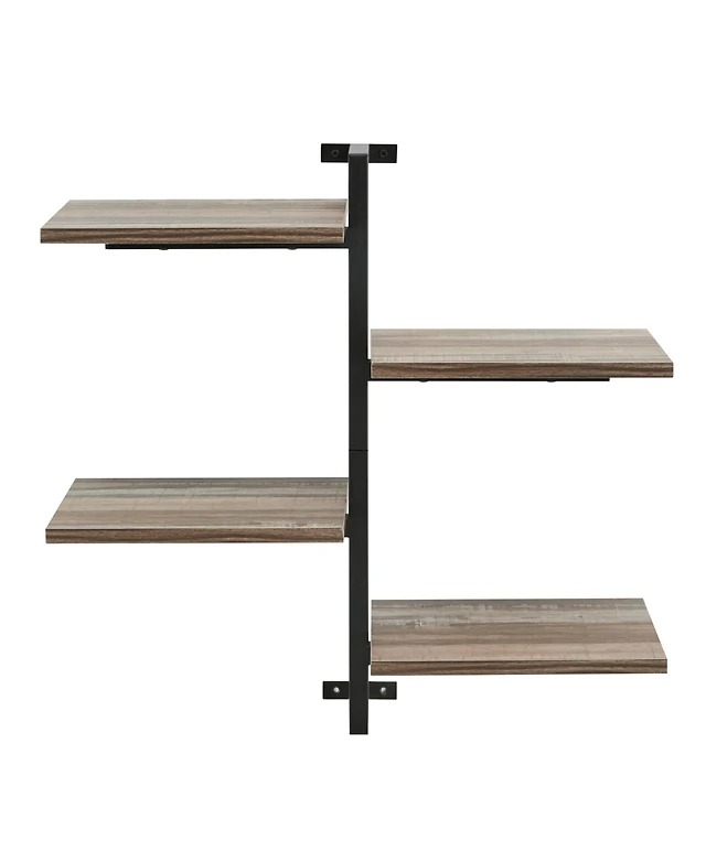 Rhodes 4 Tier Modern Floating Windowsill Wall Shelf Unit with Metal Frame and Light Walnut Mdf Shelves