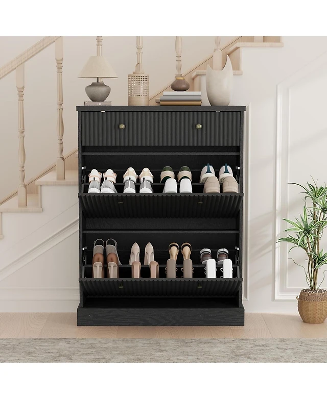 Famapy Grey Wood Bookcase With Tempered Glass Doors and 6-Drawers