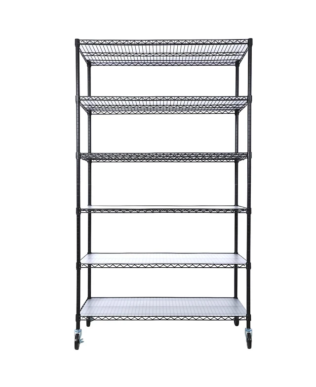 Origami R5-06W Black 4-Wheeled and 4-Shelf Folding Steel Wire Shelving Storage