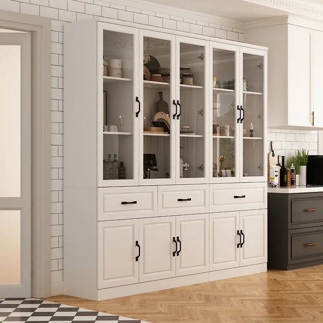 gaomon Tall Storage Bookcase with 3-Tier Open Shelves and Double Door, Roman Column Design and 4 Adjustable Lights, White & Black Wood Grain Display S