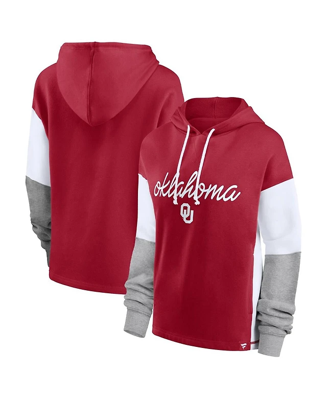 Women's Fanatics Crimson Oklahoma Sooners Play It Safe Colorblock Pullover Hoodie