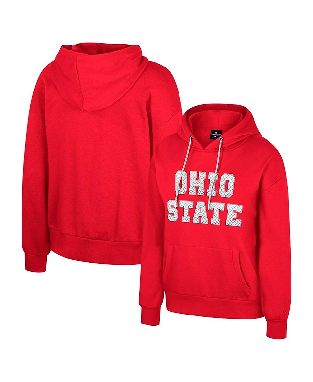 Colosseum Women's Scarlet Ohio State Buckeyes Reflection Rhinestone Drawcord Pullover Hoodie
