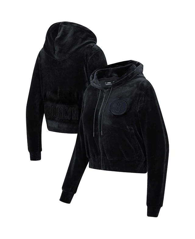 Women's Pro Standard Brooklyn Nets Triple Black Velour Full-Zip Hoodie