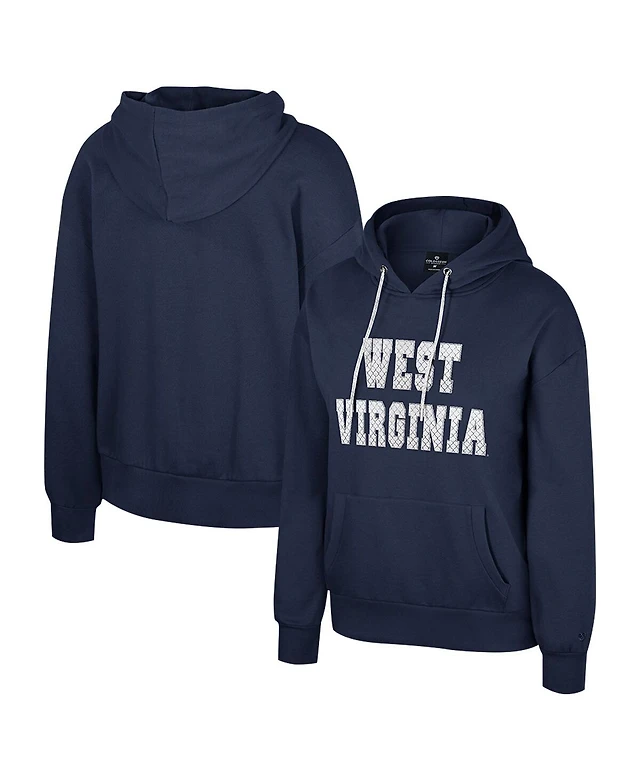 Colosseum Women's Navy West Virginia Mountaineers Reflection Rhinestone Drawcord Pullover Hoodie