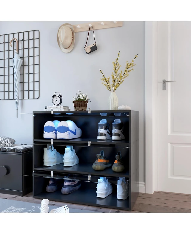 Streamdale Black Glass Door Shoe Box Shoe Storage Cabinet With Rgb Led Light