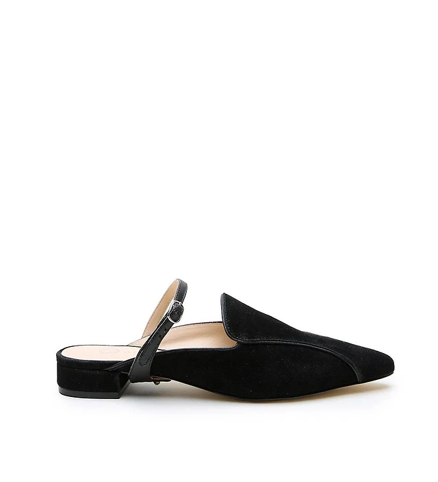 Alterre Women's Black Suede Twiggy Customizable Pointed Loafer Slides