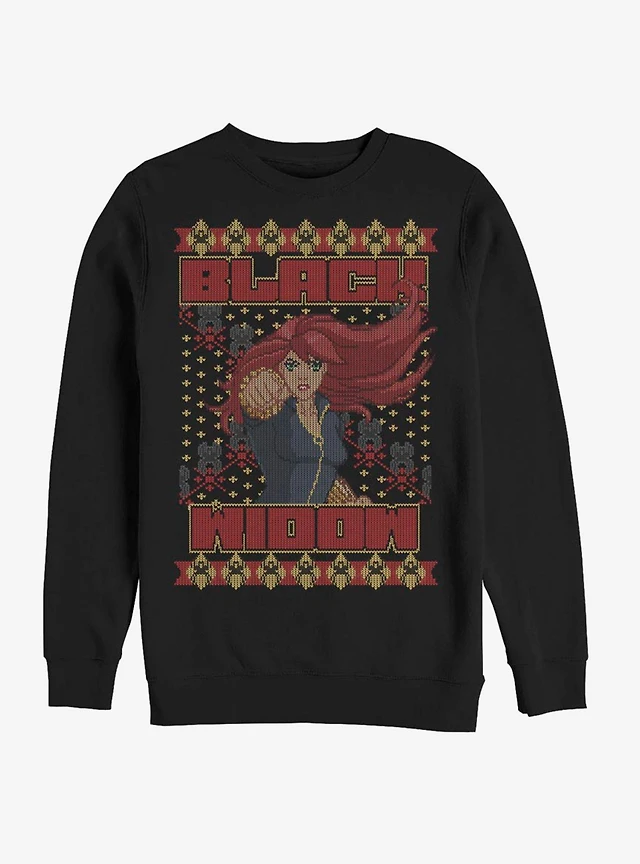 Marvel Black Widow Ugly Christmas Crew Sweatshirt