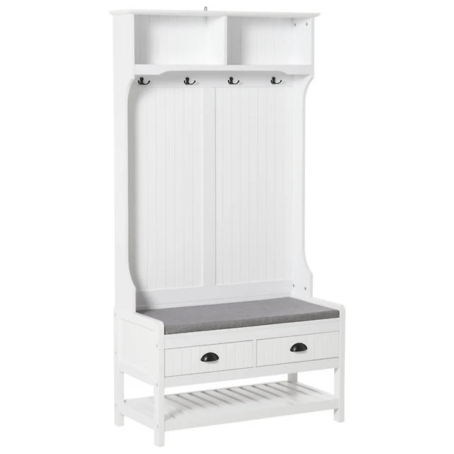 Vanirror 3-in-1 Entryway Hall Tree Storage Bench w/ Coat Racks & Shoe Bench & Cabinet