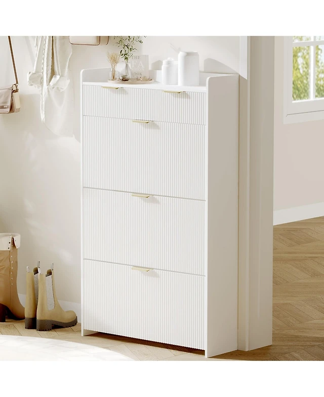 Homfan Fluted Shoe Cabinet with 2 Flip Drawers, Hidden Wooden Adjustable Shelf, Freestanding Storage
