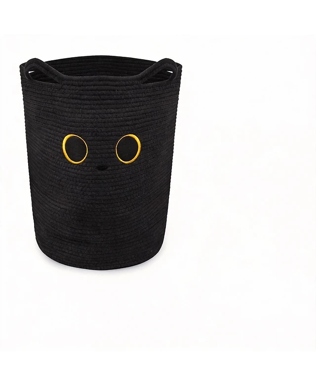 Yigii Cotton Rope Basket with Black Cat Design 53L Storage- Multi-Use Storage for Home, Office, Nursery
