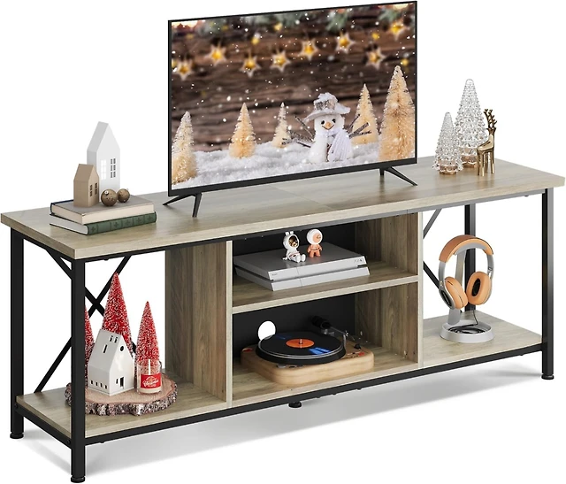 Wlive TV Stand for 55 65 Inch TvEntainment Center with Storage Console Bedroom and Living Room Industrial Midea Open Shelf Met