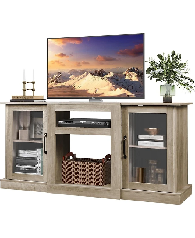 Wlive Retro Tv Stand for 65 inch Console Cabinet with Storage Open Shelves Entertainment Center Living Room and Bedroom