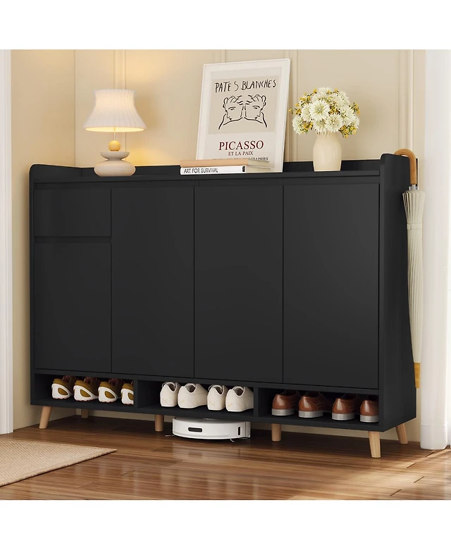 Sugift Rustic Shoe Cabinet with Flip Doors and Adjustable Shelves