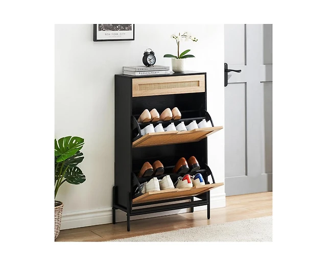 gaomon Shoe Cabinet, Free Standing Shoe Storage Cabinet with 3 Flip Drawers and Adjustable Side Cabinet, Rattan Wooden Shoe Rack, Shoe Organizer Cabin