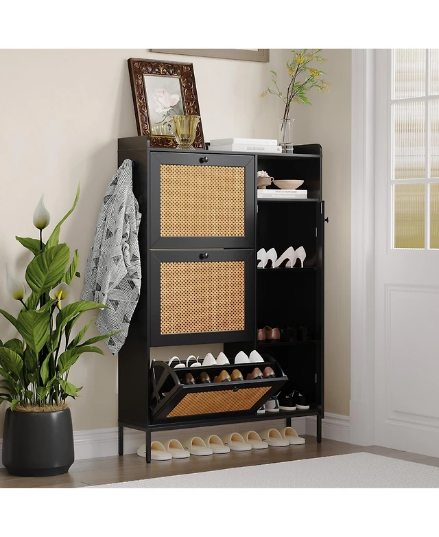 gaomon Shoe Cabinet Rattan with 3 Flip Drawers and 4-Tier Shoe Storage Cabinet