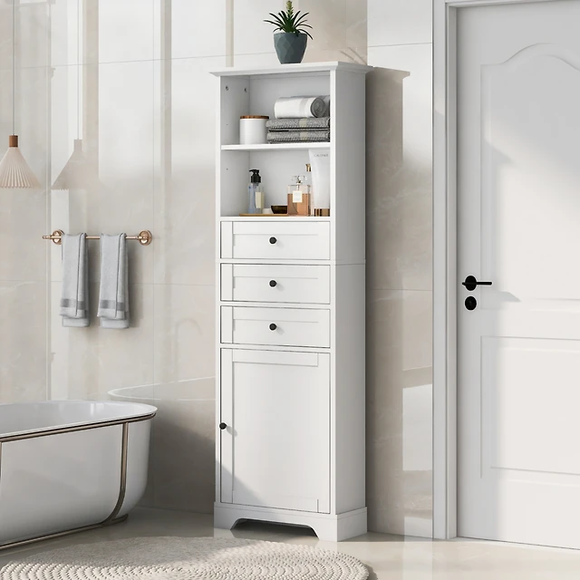 Streamdale White Tall Storage Cabinet with 3 Drawers and Adjustable Shelves